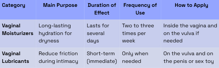 Two products can make a big difference: vaginal moisturizers vs lubricants. They are not the same — and knowing when to use each (or both) is key to feeling comfortable again.